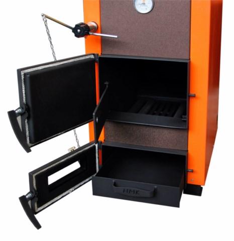 6. Технологичность. За счет внедрения водяного колосника достигнута максимальная теплоотдача носителю и увеличена скорость передачи тепла в систему. Также котел доработан и имеет автоматический регулятор тяги, который позволяет в автоматическом режиме поддерживать комфортную температуру теплоносителя. Данный котел подходит для закрытой системы отопления. В него добавлена дополнительная дверца в топочной камере, позволяющая сократить до минимума потери тепла.