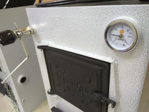 - Информативность. Температуру воды в котле показывает биметаллический термометр, встроенный в корпус.